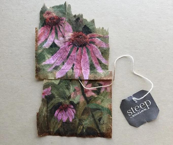 Однажды Руби обсуждала один из проектов с сестрой за чаем. Художнице пришла идея использовать чайные пакетики в творчестве. Она начала исследовать свойства материала.