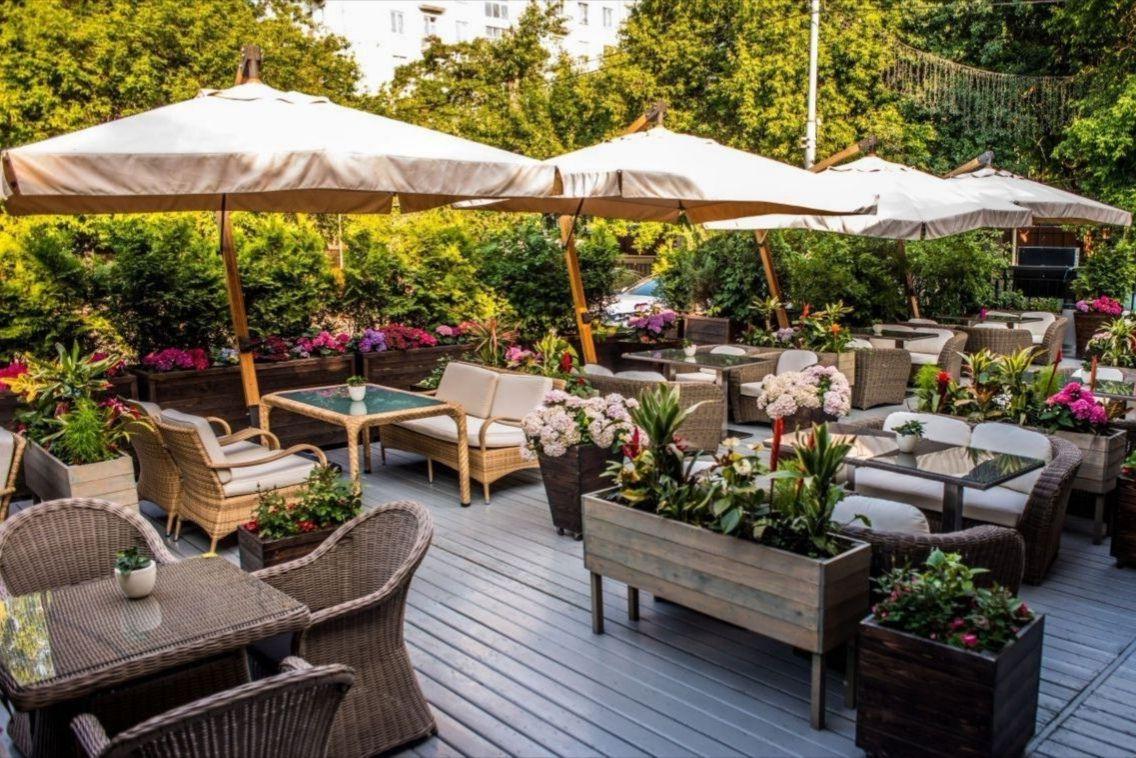 - защита от непогоды и агрессивного солнца: особенно защита от ультрафиолета актуальна в жарком климате, они также защищают от небольшого дождя, позволяя гостям комфортно наслаждаться открытым пространством;