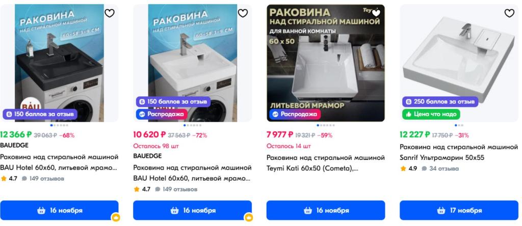 Для раковин над стиральной машиной обращайте внимание на высоту стиральной машины — от этого зависит удобство пользования.