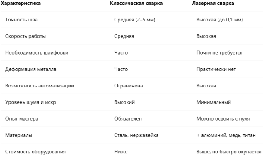 Сравнение лазерной сварки и классической