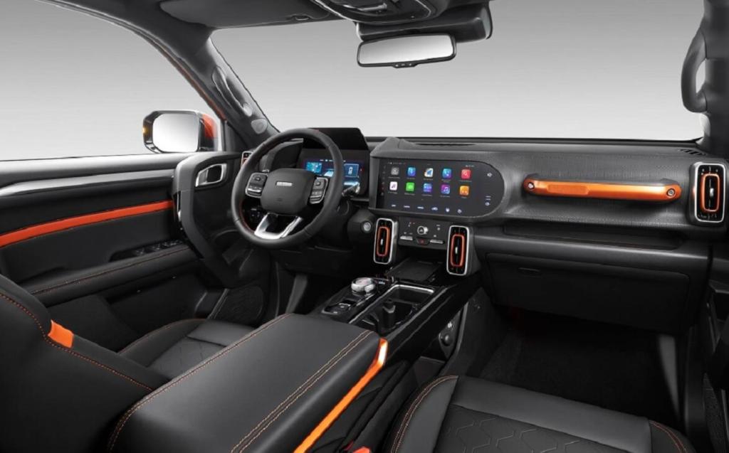 Салон HAVAL DARGO ориентирован как на комфорт водителя, так и на удобство пассажиров. Водительское место представлено кожаным рулевым колесом с подогревом, подрулевыми лепестками и регулируемой рулевой колонкой, что создает основные удобства для управления автомобилем. Цветовая гамма интерьера варьируется от стильного черного до выразительного черного с оранжевыми вставками, а также бежевого с яркими акцентами, что создает уют и динамичную атмосферу. Удобные элементы (штурманская ручка и передний 12V разъем) добавляют функциональности. Задний ряд сидений может складываться в пропорции 60:40, что позволяет легко настраивать пространство для багажа и адаптировать автомобиль под различные нужды, будь то поездка на выходные или домашние дела.
