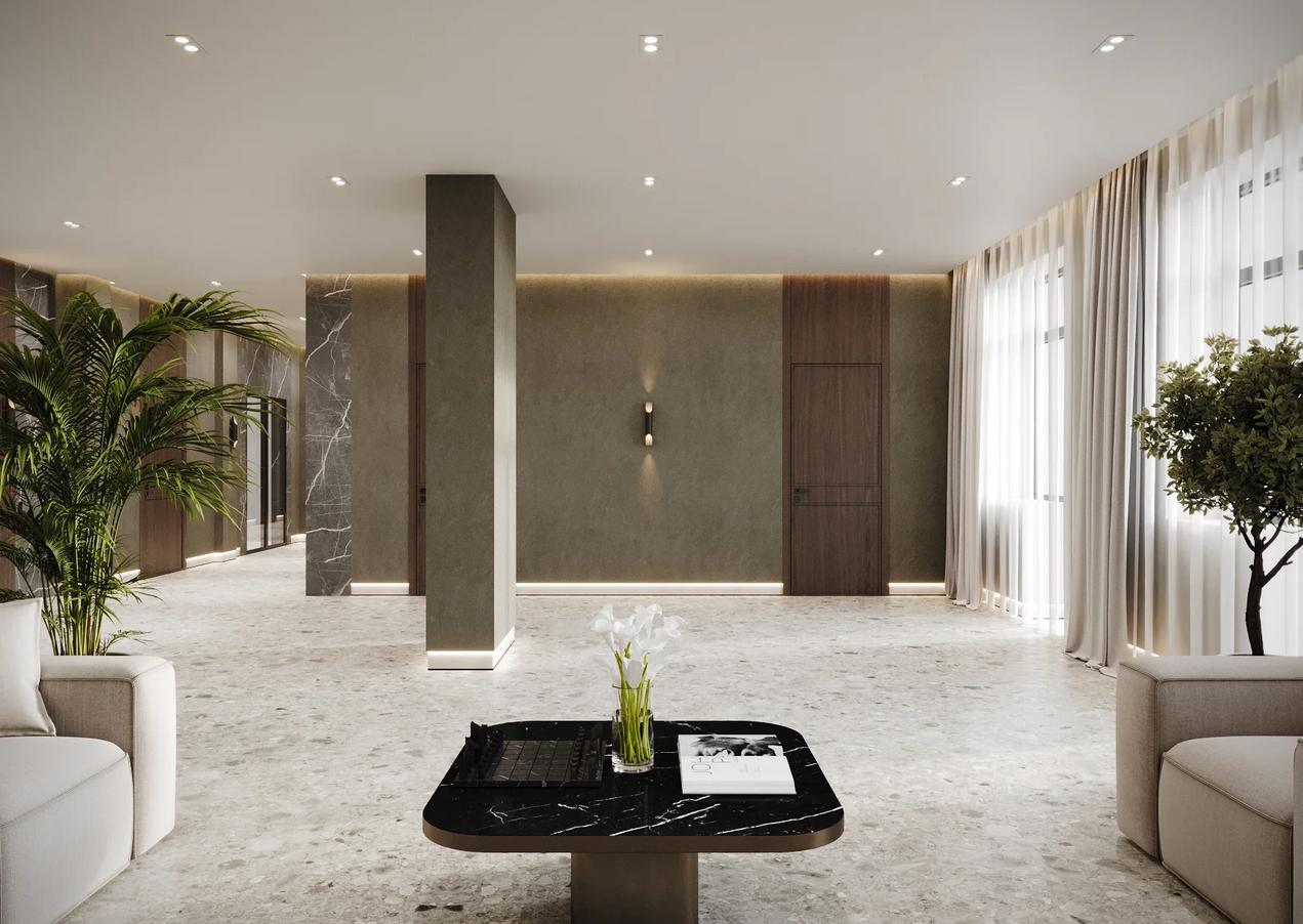 Дизайн комплекса сочетает современную эстетику и кавказскую самобытность. Светлые фасады, просторные террасы, панорамные окна и вид на Каспий создают атмосферу уюта и вдохновения. Для жителей и гостей предусмотрена целая система общественных пространств: