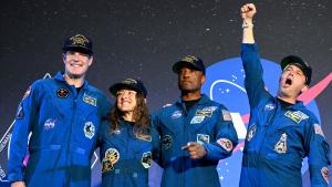 Сотрудники НАСА и высокопоставленные лица встретили Рида Уайзмана, Виктора Гловера, Кристину Кох и Джереми Хансена как героев. Недалеко от этого места они проходили подготовку к своей миссии.