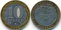 Изображение древнейшего города России – Дербента впервые появилось на денежных знаках России в 2002 году. Речь идёт о монетной серии, где представлены древние города России. На монете номиналом 10 рублей изображена древняя Нарын-Кала на фоне гор. На реверсе – город-крепость и горы над ним, там же – герб города. Авторы монеты – художник А. Кунац и скульптор И. Копыткин.