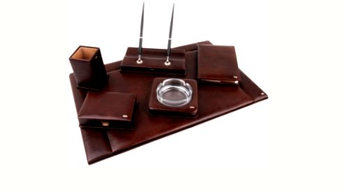 В каталоге магазина все обращают внимание на красивый и солидный подарочный набор руководителю, в котором пять предметов, обтянутых лучшей кожей. Отлично выглядит маникюрный набор в футляре из долговечной натуральной кожи, кошелек для женской бижутерии в форме сердечка, подарочная коробка и другие аксессуары.