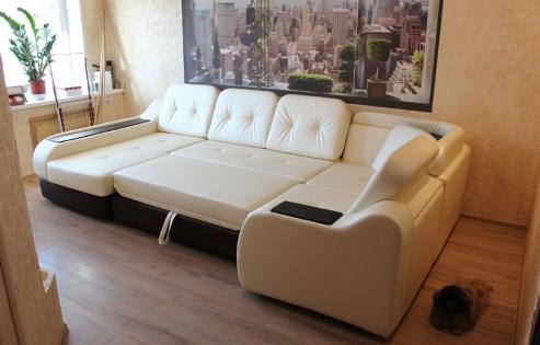 Идеален в этом отношении угловой диван. Он подходит для малогабаритных квартир, так как оснащён механизмом-трансформером и может использоваться в качестве просторного и удобного спального места. Иногда такая модель имеет небольшую столешницу или встроенный бар, что делает её более функциональной. Из этой серии – диваны «Атлантик-Сити», «Александр» и «Альт», востребованные покупателями.